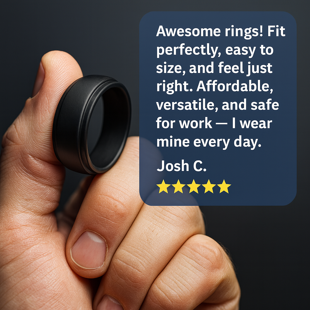 From the jobsite to the gym, thousands of husbands and athletes are making the switch to silicone. Comfortable, safe, and built to last — this is the ring men actually wear.